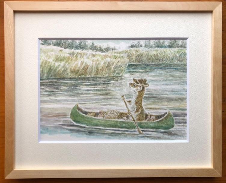 湿原でカヌーをこぐおこじょ。山の爽やかな空気をイメージして。
