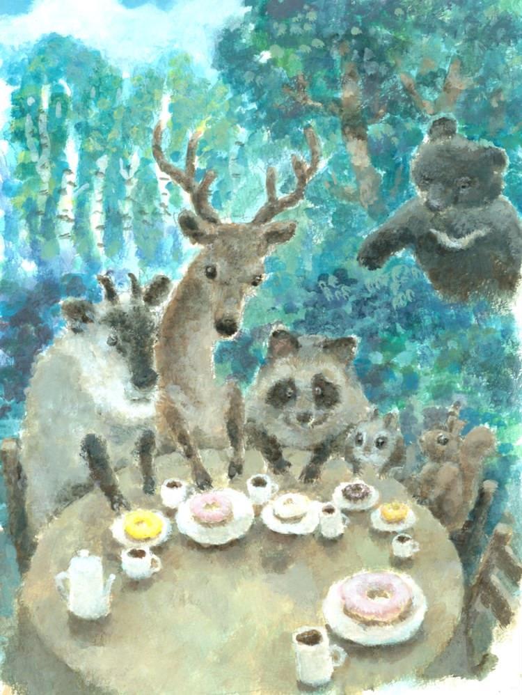 森の動物たちのティータイム。遅れて来たくまさんは仲良くお茶が出来るかな?