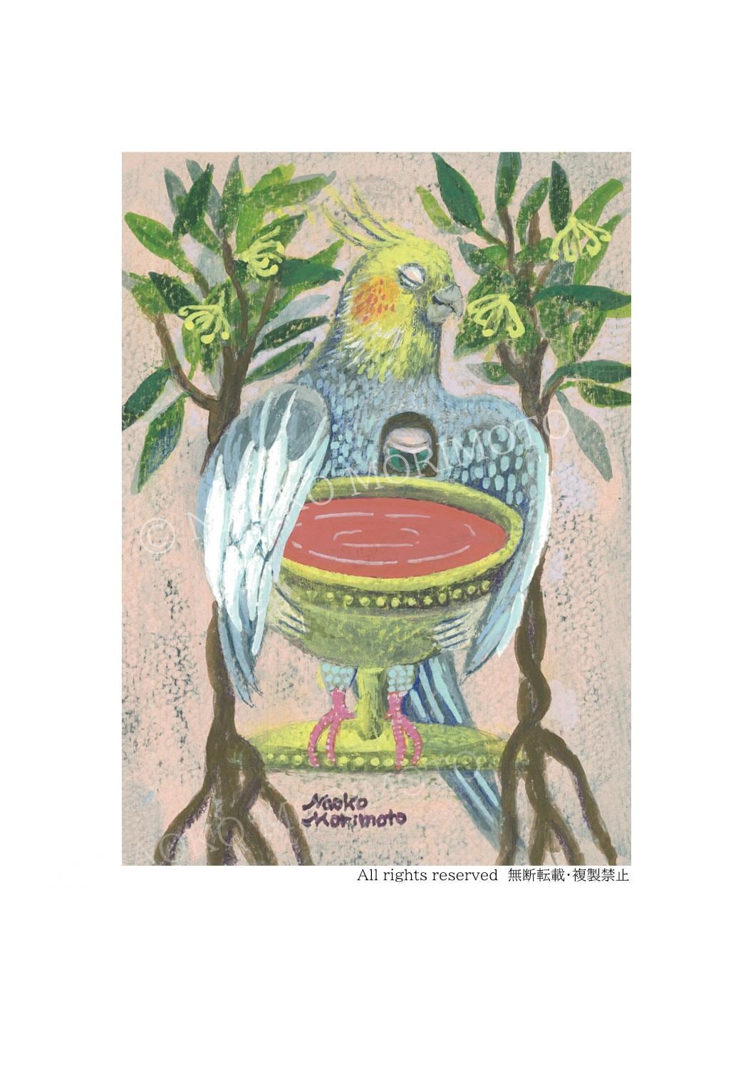 【版画】 森本ナオコ「Ace of Cups」 オカメインコ・ジャスミン